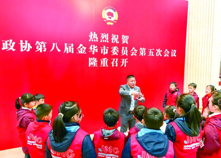 1月19日下午,来自金华市宾虹小学、李渔小学、东莱小学等学校的20名小记者,走进委员驻地采访市政协委员童志斌。