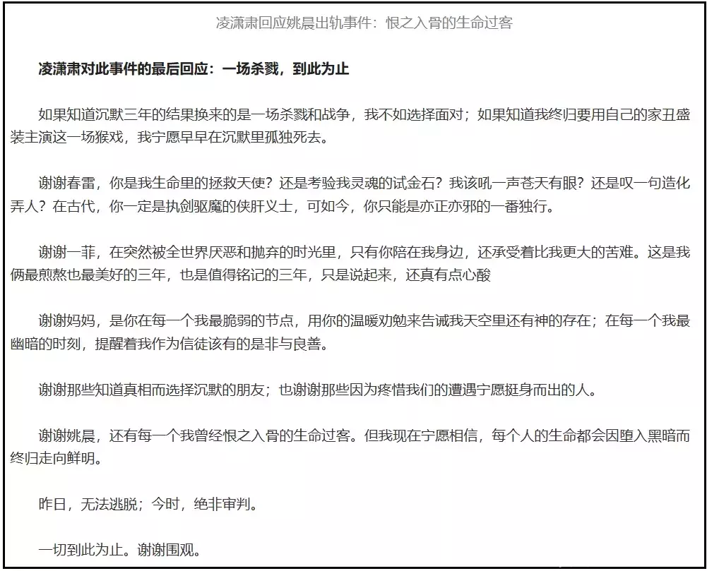 也许是巧合,也许是恨之入骨,凌潇肃自此就停更了相关平台账号,只在微博更新动态了。