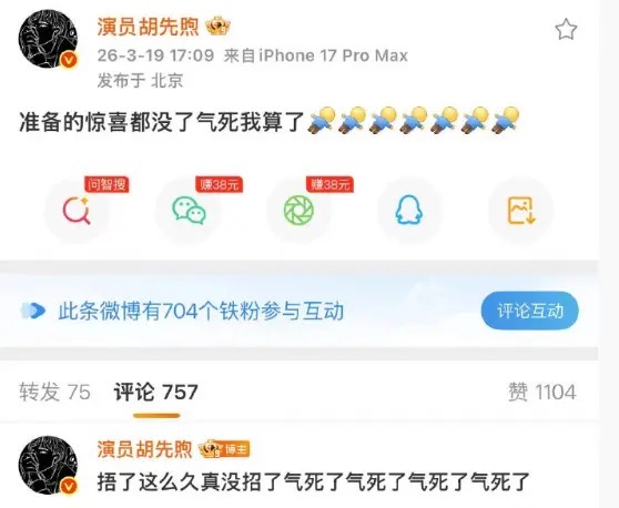 他当场发微博抱怨:"捂了这么久真没招了气死了",表达强烈懊恼;但约5分钟后意识到次日是农历二月二"龙抬头",传统习俗中不宜动怒。